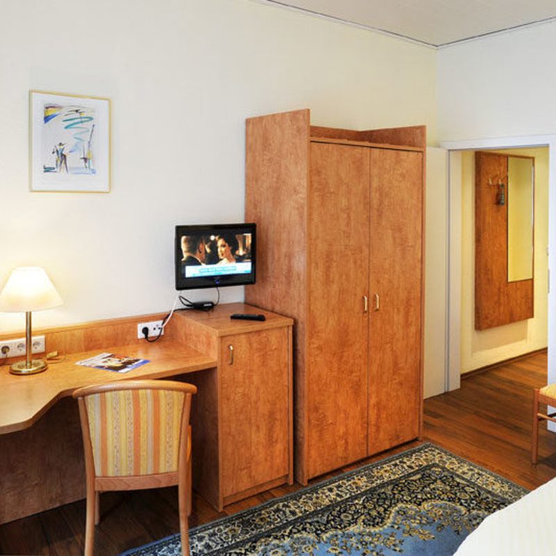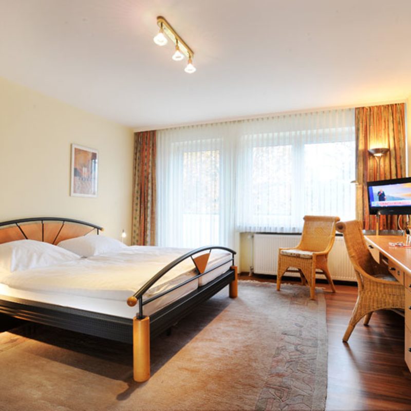 In 2017 wurden alle unsere Zimmer umfassend renoviert. Alle Zimmer mit eigenem Bad/WC. Sie verfügen über FlatTV und freies WLAN. Unsere Zimmer sind für Allergiker geeignet. Bitte vermerken Sie dies bei Ihrer Buchung. Wir verfügen über eine Fahrradgarage mit mehreren Ladestationen für E-Bikes. Hauseigene Parkplätze in ausreichender Anzahl (inkl. Behindertenparkplatz) und Garagen sind direkt am Hotel vorhanden. Außerdem stehen Ihnen zwei Ladestationen für Ihren PKW zur Verfügung.